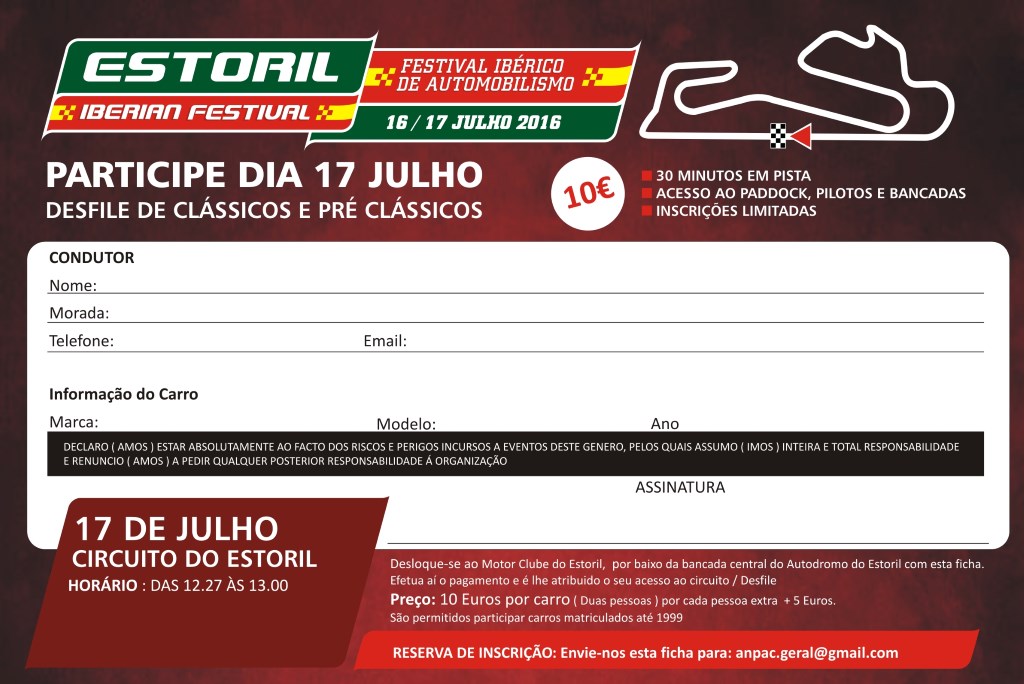 Dia 17 Julho no Autodromo do Estoril, inscrições limitadas.