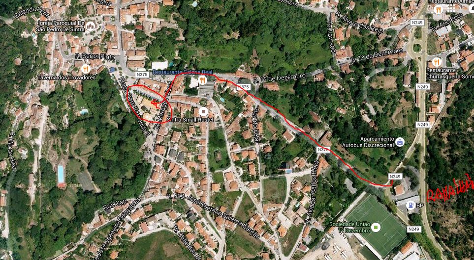 vir pela Ic19 até ao fim, na Rotunda do Ramalhão passar a BP e virar a direita para São Pedro de Penaferrim (Sintra), começar a subir e ao chegar ao centro passados uns 200 metros virar a esquerda (ver mapa)